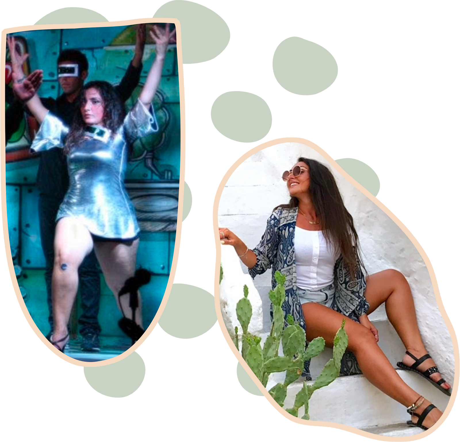 On the left, hiding your legs feels almost mandatory, extra layers, stage lights, and self-doubt all blend together.