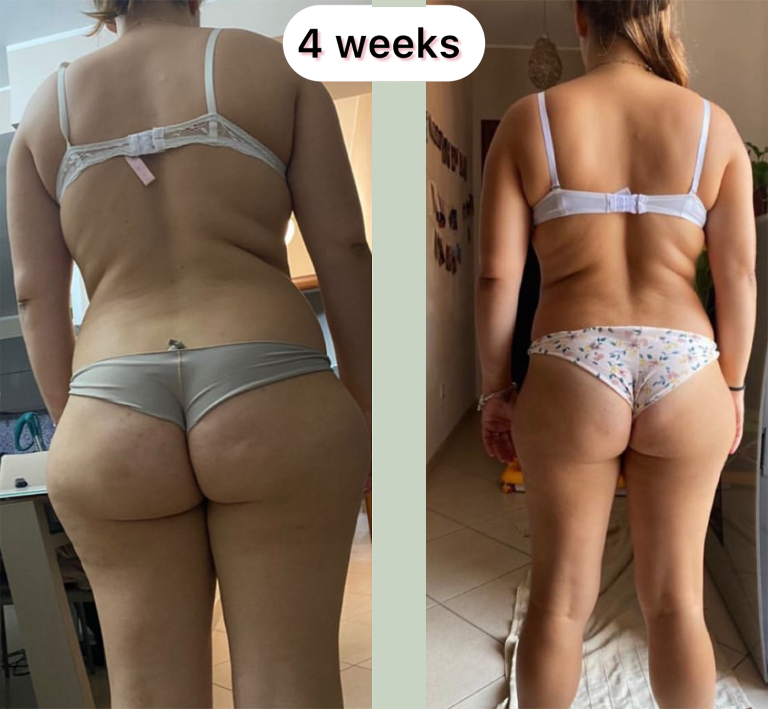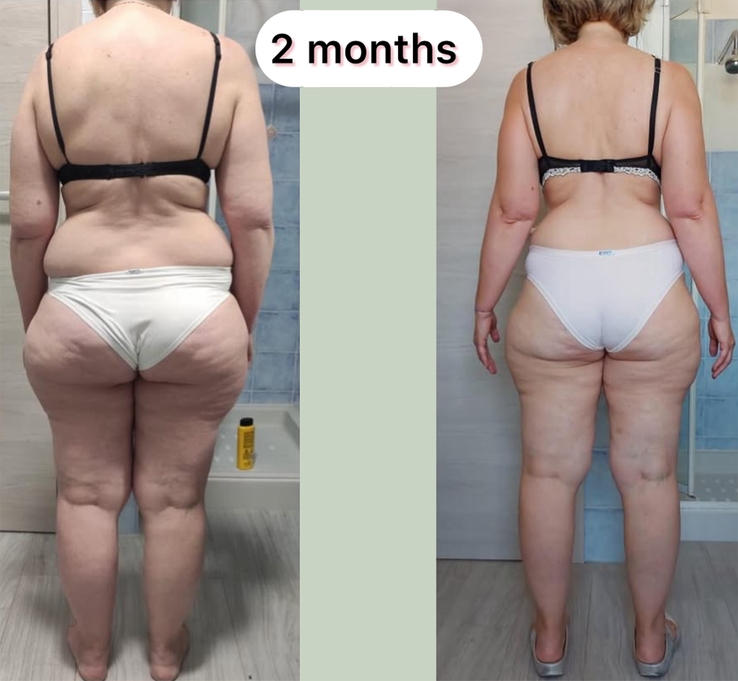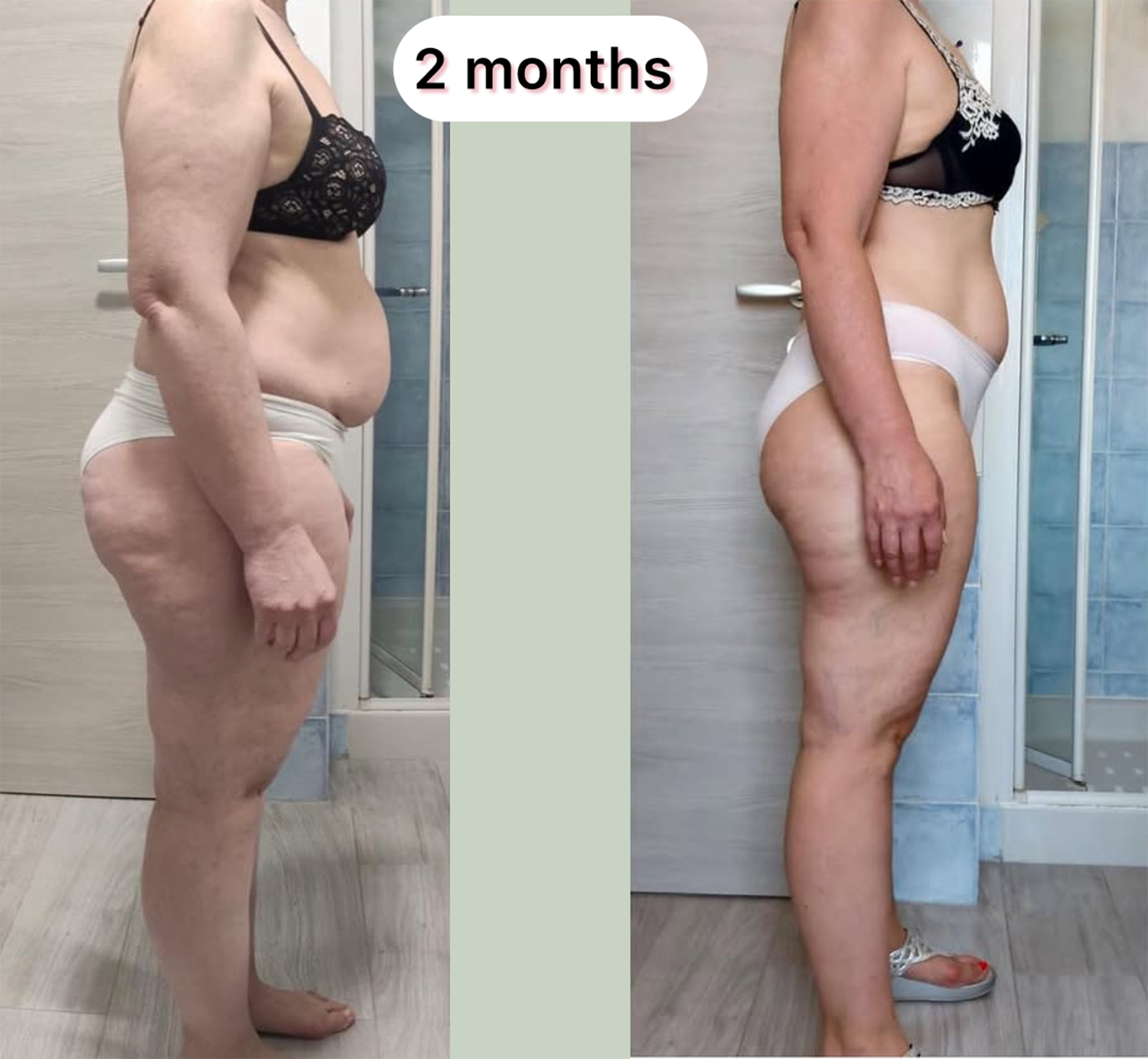 “Seeing my before and after side by side was emotional. My legs look lighter, but most of all I finally enjoy moving again. MyFlowEra gave me structure, hope and a routine that feels like self love, not punishment.”